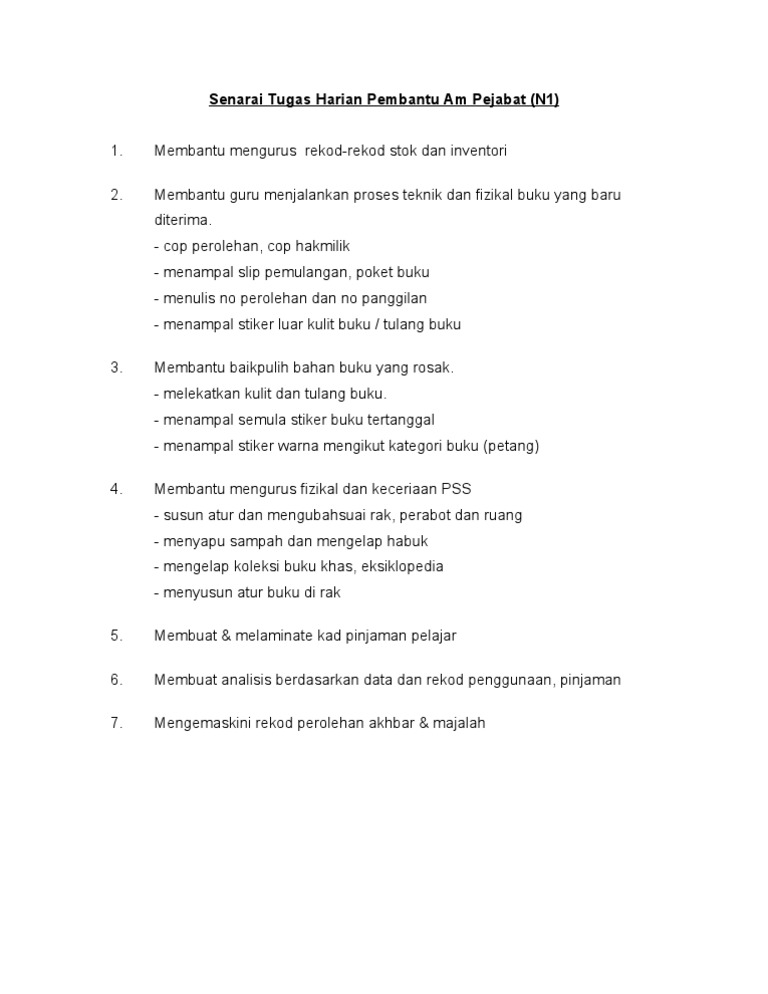 Senarai Tugas Pembantu Tadbir Perkeranian