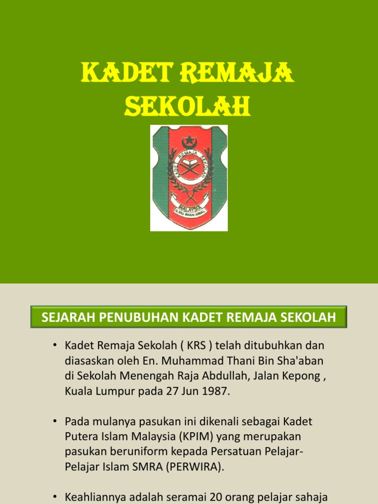 Tunas Kadet Remaja Sekolah Sejarah Penubuhan Tunas Krs