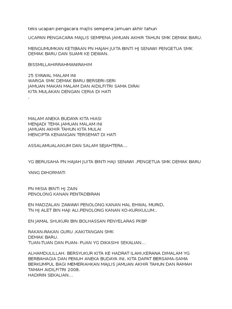 Teks Ucapan Majlis Jamuan Akhir Tahun Smkj Edit Docx