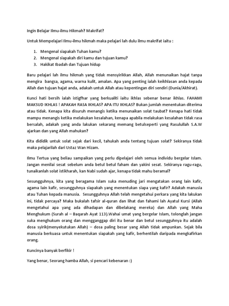 I Love Kuliah Betui Ka Beljaq Ilmu Makrifat Tu Sesat Ustaz Wan Hizam Facebook