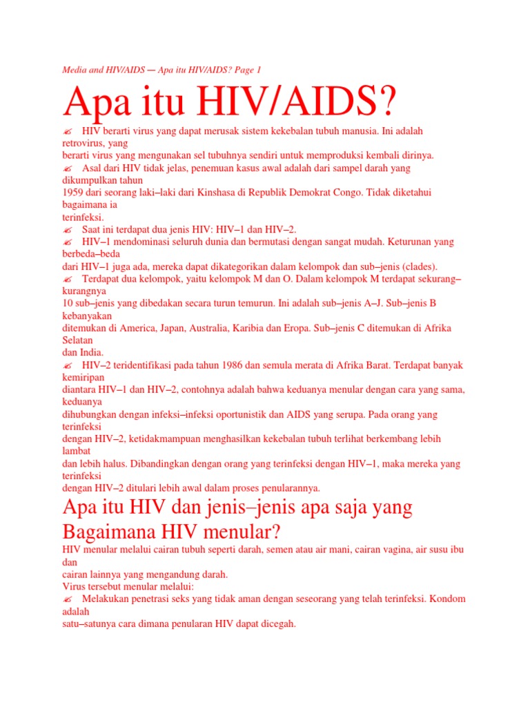Pada Dasarnya Hiv Human Immunodeficiency Virus