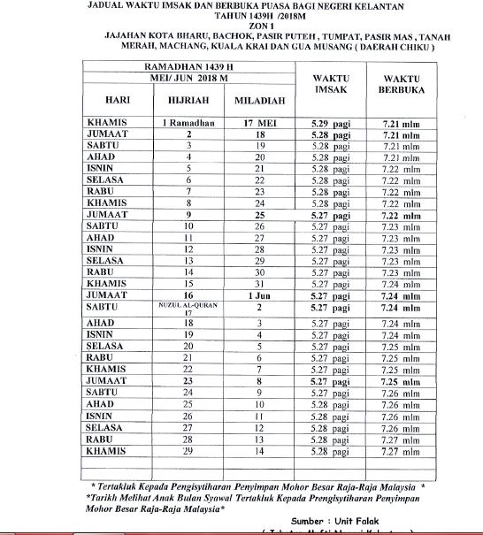 Jadual Waktu Imsak Dan Berbuka Puasa Tahun 1439h 2018m Bagi Negeri Kelantan