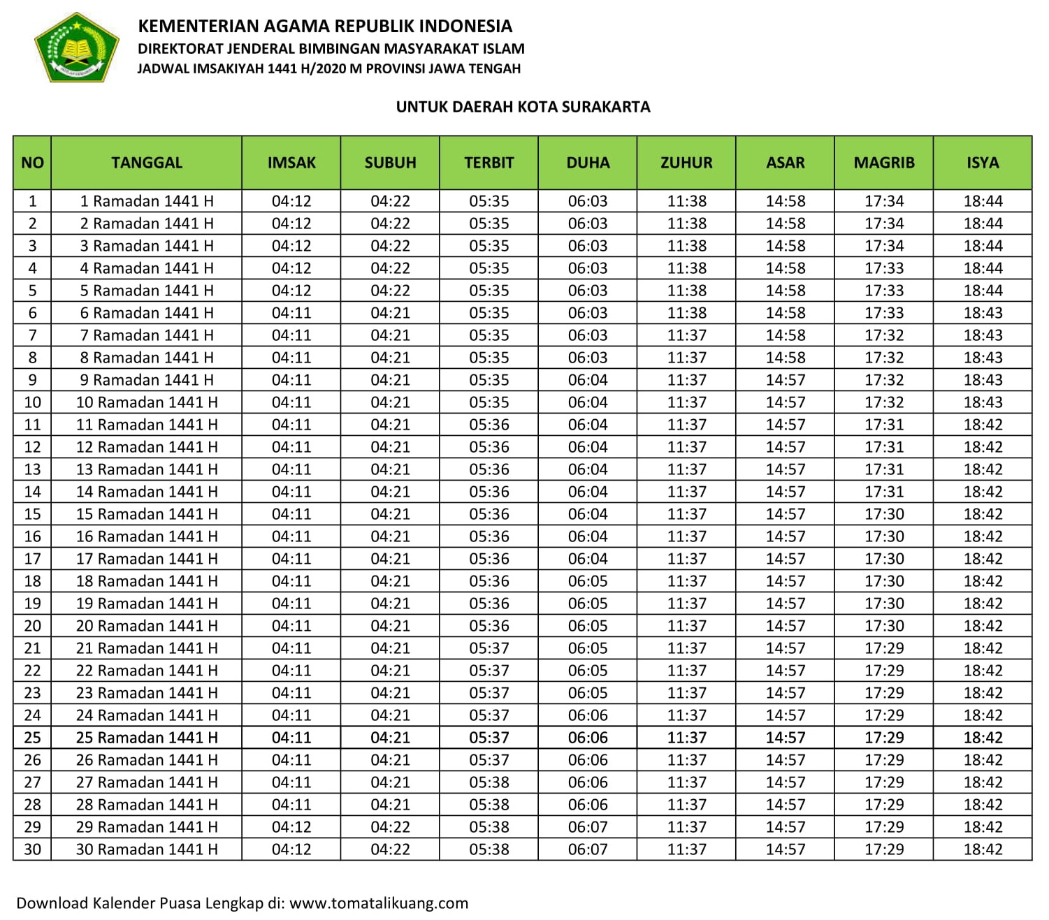 Jadwal Imsak Buka Puasa Kota Surakarta Hari Ini 2020 M 1441 M