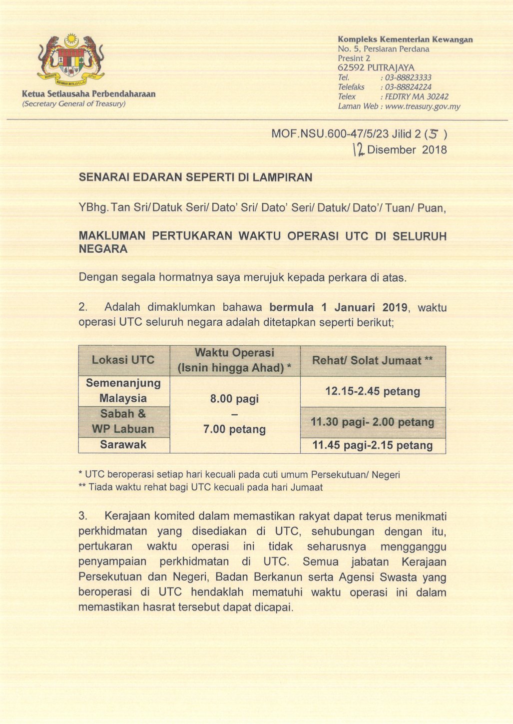 Lhdnm Auf Twitter Salam Sejahtera Untuk Makluman Pindaan Waktu Operasi Di Utc Seluruh Negara Telah Dimaklumkan Menerusi Siaran Media Yang Dikeluarkan Oleh Kementerian Kewangan Malaysia Pada 12 Januari 2019 Waktu Operasi Utc
